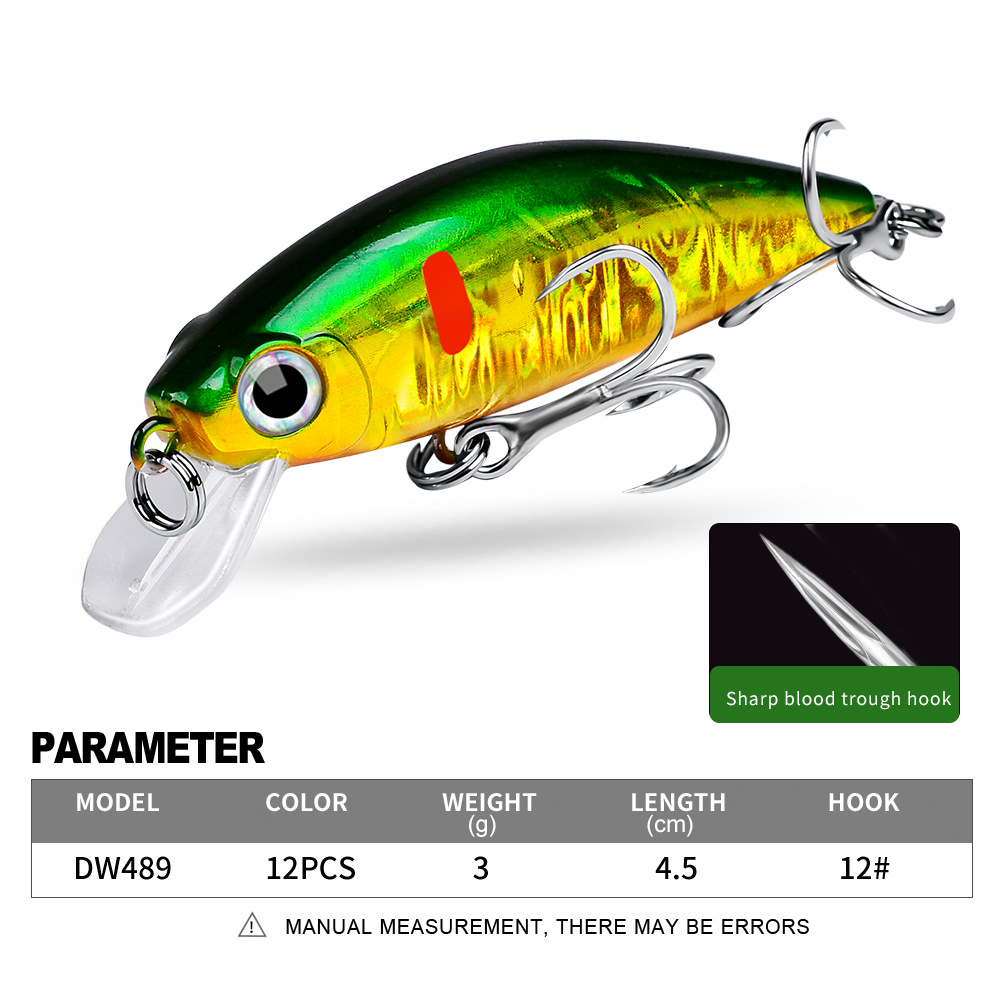 YEZIXIN DW489 Slow Sinking Minnow – 4.5cm 3g 12 Color Options,#12 Blood Trough Hook Micro Fishing Lure