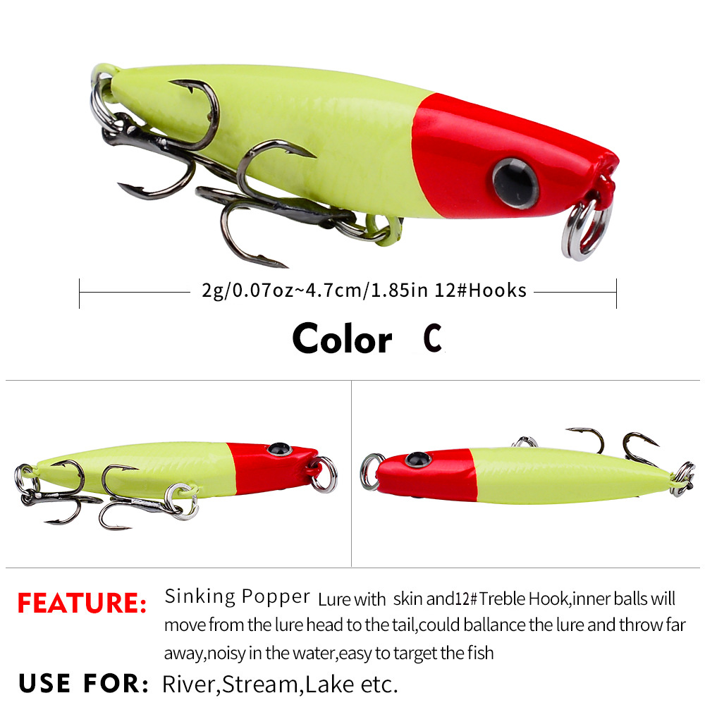 YEZIXIN DW357 7.5cm 19g Topwater Popper Lure 3 Colors (G/E/H) - SKU 564324956691