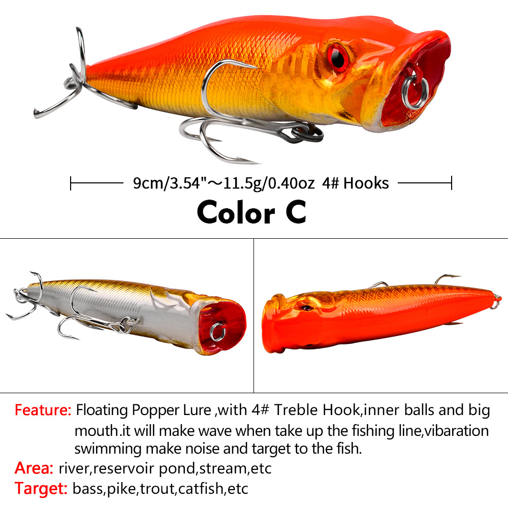 YEZIXIN DW357 7.5cm 19g Topwater Popper Lure 5 Colors (A/B/C/D/E) - SKU 734839892982