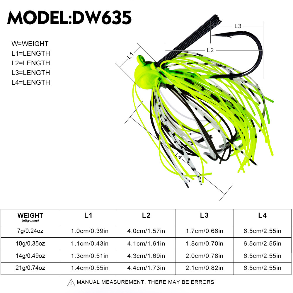 • Full Color Range: All 5 distinct silicone skirt patterns (neon green, orange, blue, black, white) for clear/murky water and different light conditions.