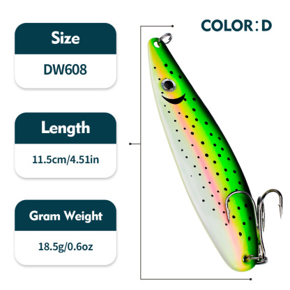 - Realistic Printed Pattern: Hyper-realistic fish-scale printing and 3D lifelike eyes trigger instinctive predatory strikes, while the laser skin produces intense light reflection in all water conditions.