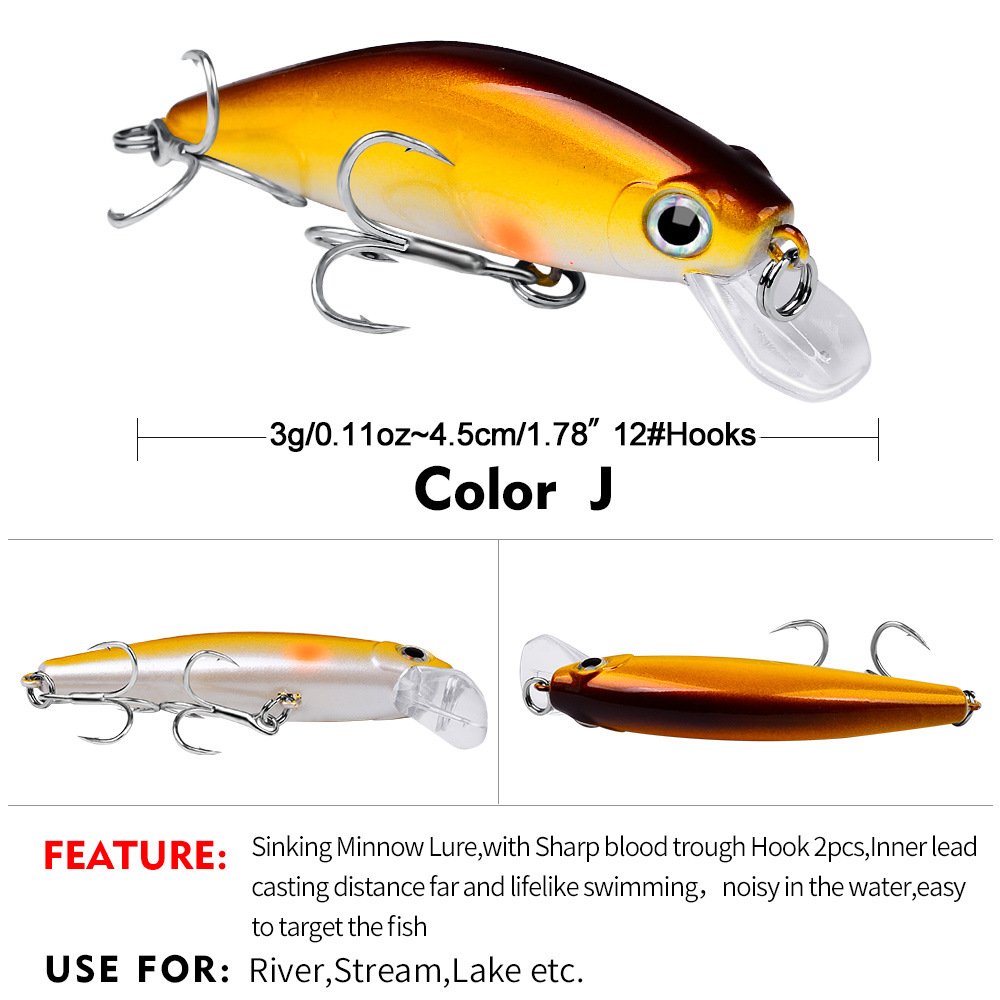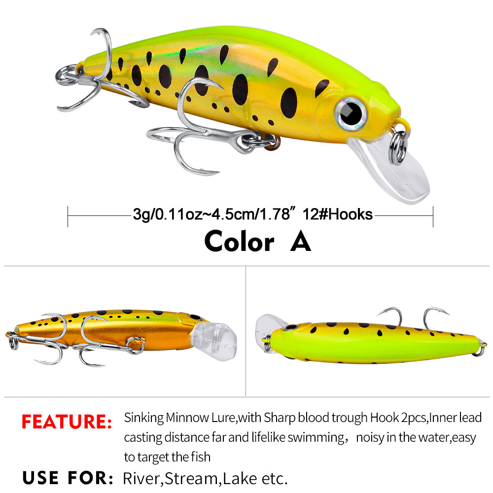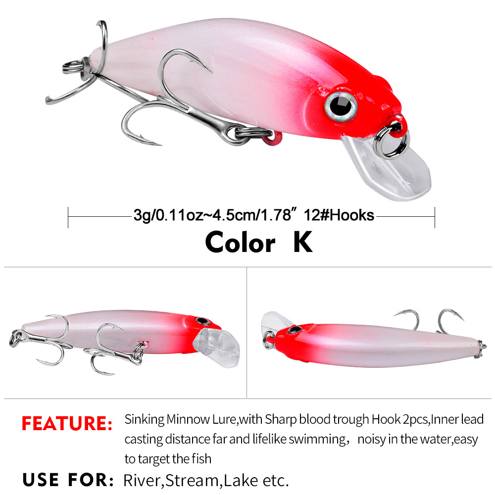 - Micro Size for Finesse Fishing: 4.5cm/3g ultra-compact profile is perfect for targeting panfish, trout, and juvenile bass—ideal for clear water or low-activity periods.
