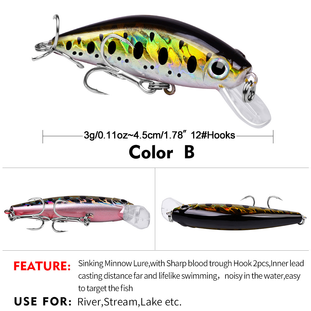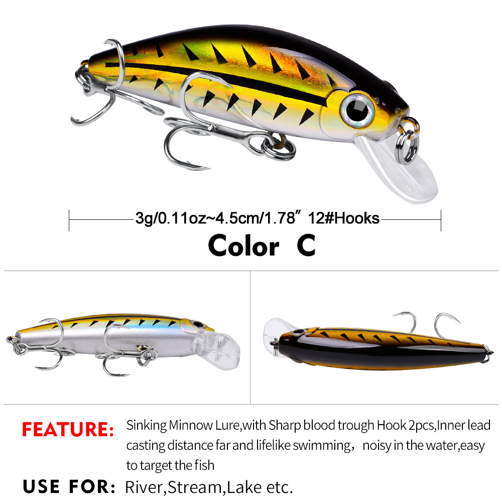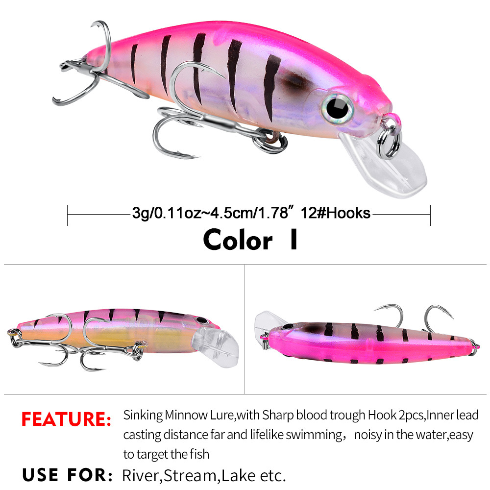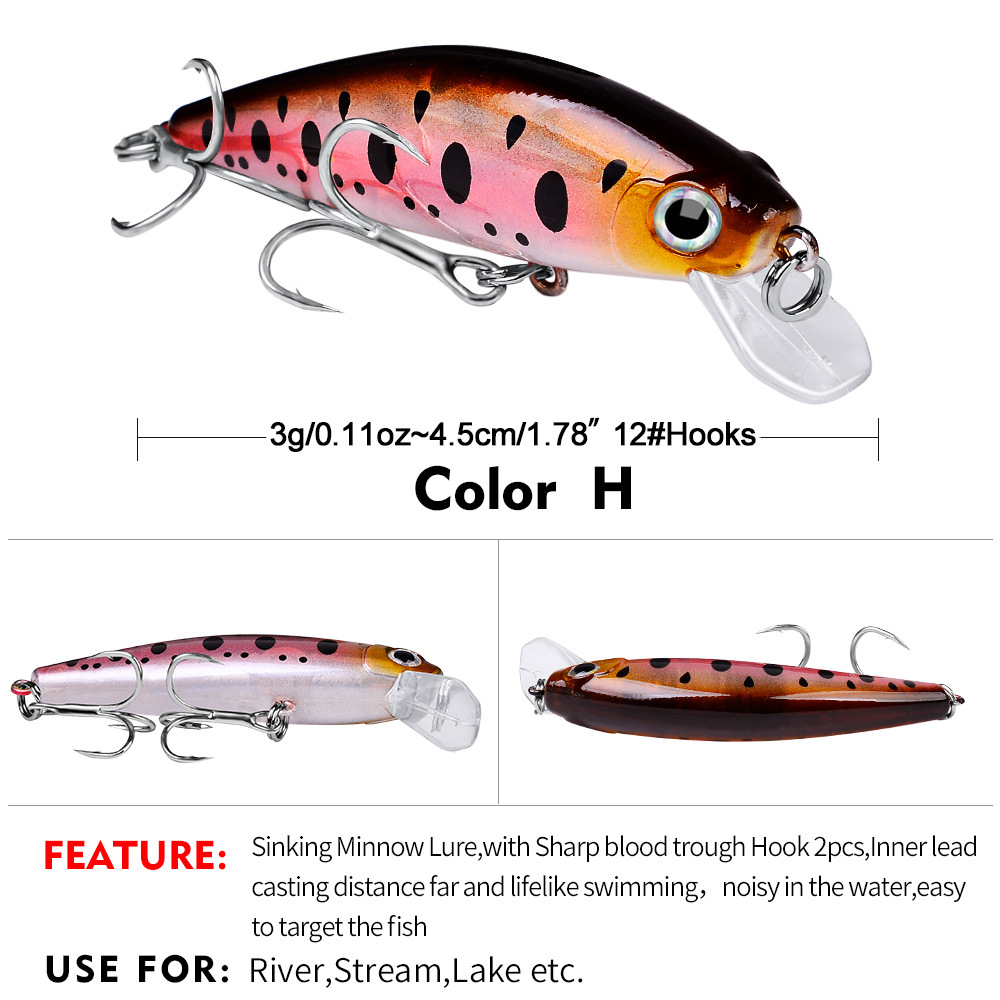 - Micro Size for Finesse Fishing: 4.5cm/3g ultra-compact profile is perfect for targeting panfish, trout, and juvenile bass—ideal for clear water or low-activity periods.